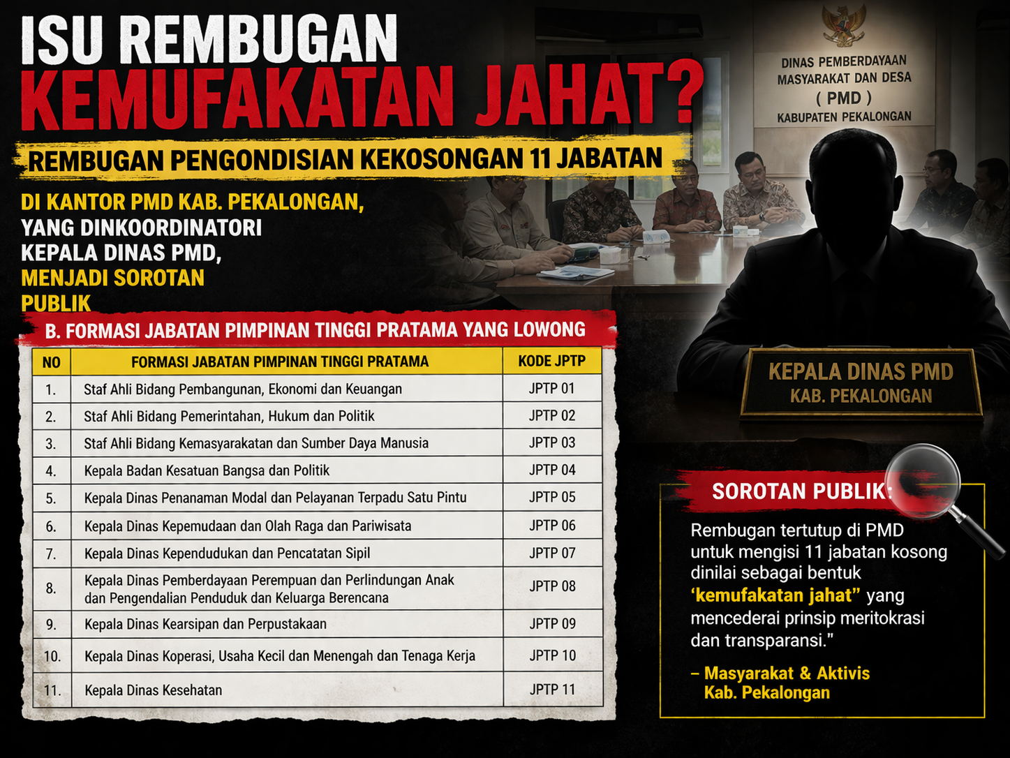 Isu Rembugan “Kemufakatan Jahat” Pengisian 11 Jabatan di Kabupaten Pekalongan Jadi Sorotan Publik