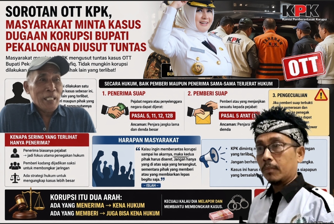 SAHABATNKRI.COM | PEKALONGAN –24-April – 2026-Penanganan kasus Operasi Tangkap Tangan (OTT) yang dilakukan Komisi Pemberantasan Korupsi (KPK) terhadap Bupati Pekalongan, Fadia Arafiq, menuai perhatian luas dari berbagai lapisan masyarakat. Warga mendesak agar proses hukum yang berjalan tidak berhenti pada satu pihak saja, melainkan diusut secara menyeluruh hingga ke akar-akarnya.